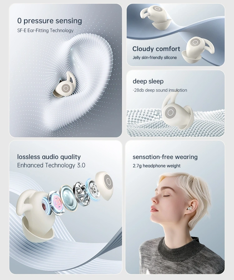 革命的なスリープエイドTWSイヤホンをご紹介します。このイヤホンは、優れた快適性と高度なオーディオ技術を兼ね備え、安らかな眠りへと導きます。超ソフトな素材で作られており、一晩中装着しても圧迫感がありません。.